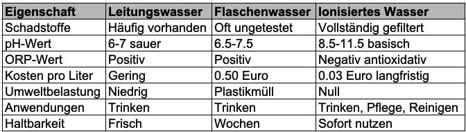 Vergleich: Leitungswasser vs. Ionisiertes Wasser vs. Flaschenwasser